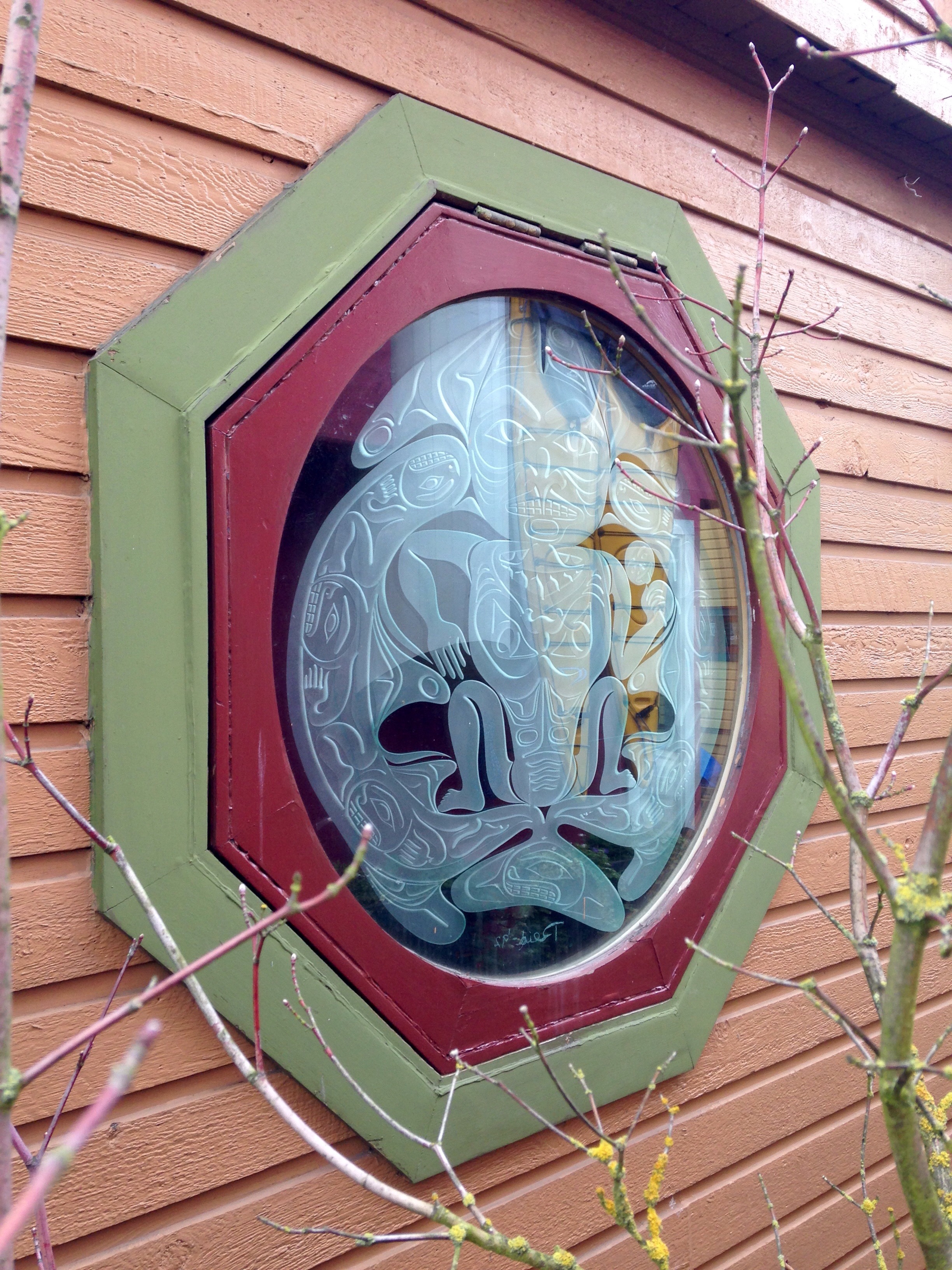 Window created by Bill Reid; Property of C. Linde. Photo by Rebecca Anderson.